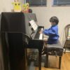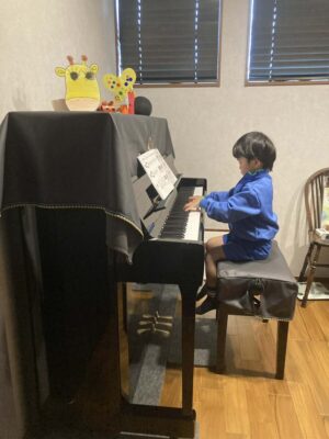 年中さんのT君。これまでは電子ピアノでしたが、このタイミングでアコースティックピアノをご用意いただきました。